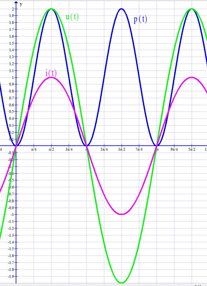 Grafici u,i, p za R,L i C u kolu naizmenične struje